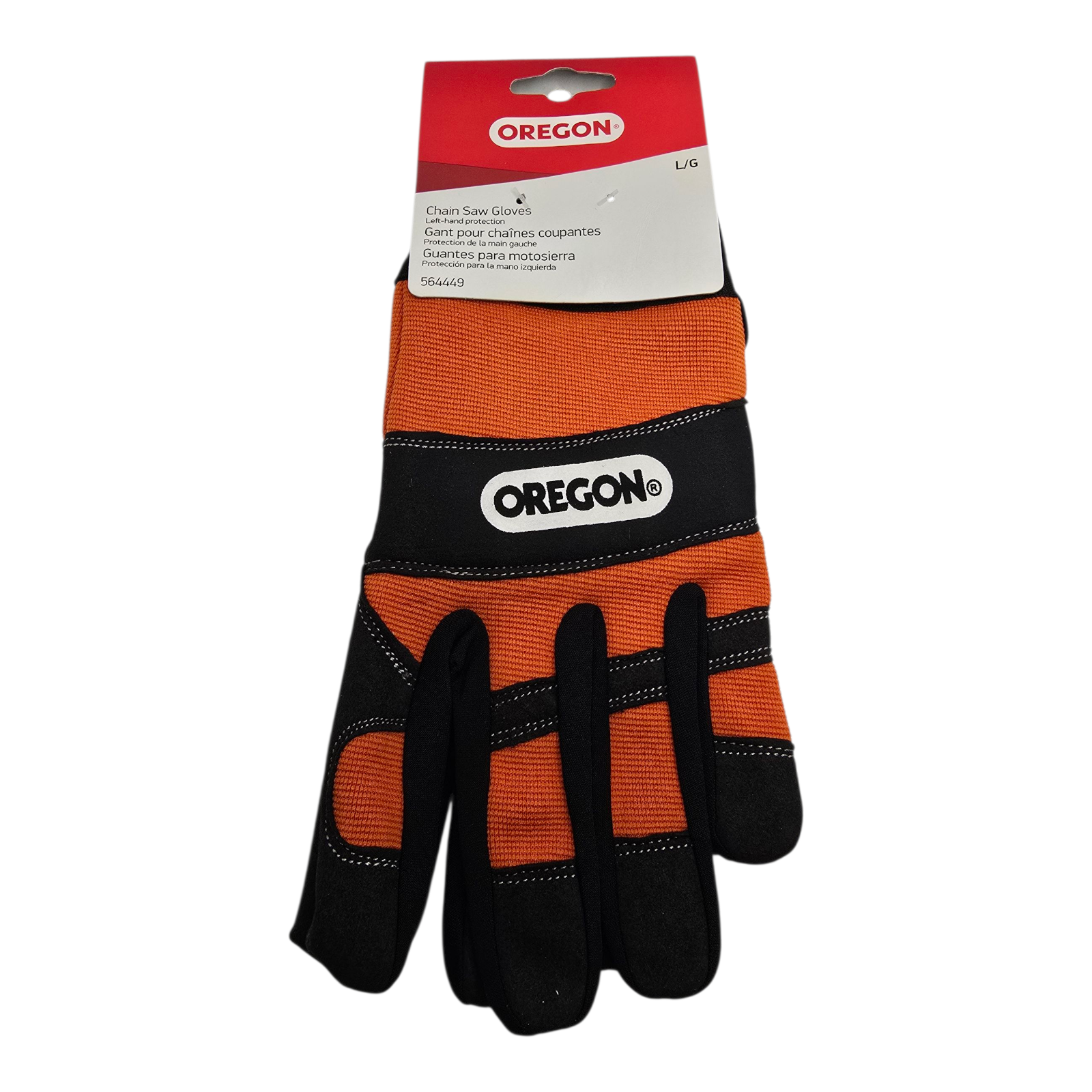 Protective chainsaw gloves from Oregon. Left hand chainsaw protection is ideal for having your free hand protected and operating hand comfortable. Washable material makes it easy to keep clean.